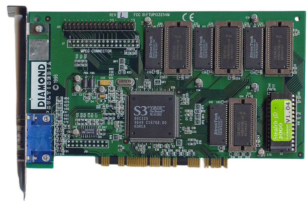 3D: É exatamente este um dos nomes que simboliza a chegada dos visuais em três dimensões ao PC: S3 ViRGE. 1995 foi o ano, S3 foi a fabricante. Os fãs de realidade virtual ficaram abismados com o lançamento da série VIRGE, tanto que o mercado de placas foi dominado pela companhia por um bom tempo.