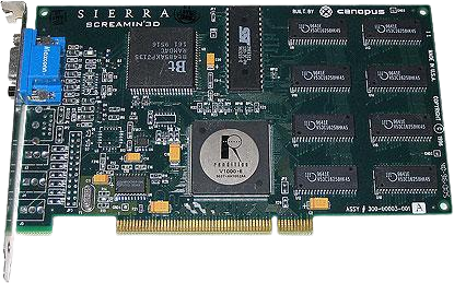 Voodoo: A ascensão da 3DFX foi rápida e avassaladora e em 1996, a Voodoo 1 balançou o mercado do processamento gráfico, com um desempenho 3D espetacular. Mas em contrapartida, a placa não apresentava nenhuma funcionalidade 2D, exigindo que o consumidor comprasse mais de uma placa caso optasse pela Voodoo 1.