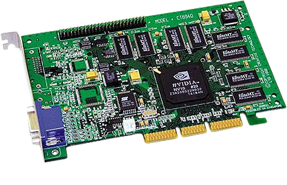 A NVIDIA: No início da revolução 3D, a NVIDIA mostrou a NV1 logo após a S3 ViRGE, uma concorrente de peso. O processamento gráfico 2D/3D desta placa é baseado em superfícies quadrangulares — o mais comum é o uso de polígonos triangulares — e conta com um processador de som de 32 canais. Uma das peculiaridades da NV1 é a porta compatível com o video game SEGA Saturn, mas isso não evitou o fracasso da placa. A concorrência superou a NVIDIA nessa fase da evolução 3D, pois, mesmo com um desempenho relativamente bom, a NV1 e os seus estranhos polígonos quadrangulares custavam caro.